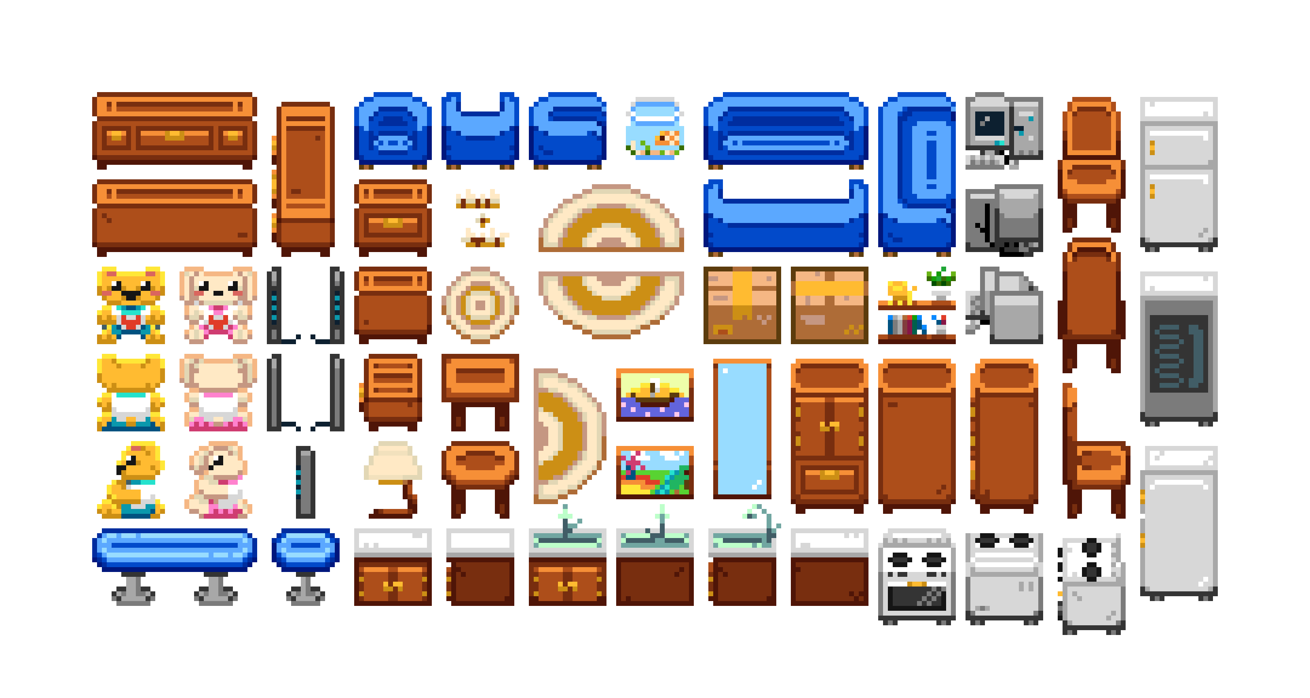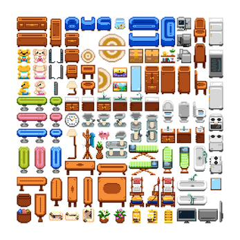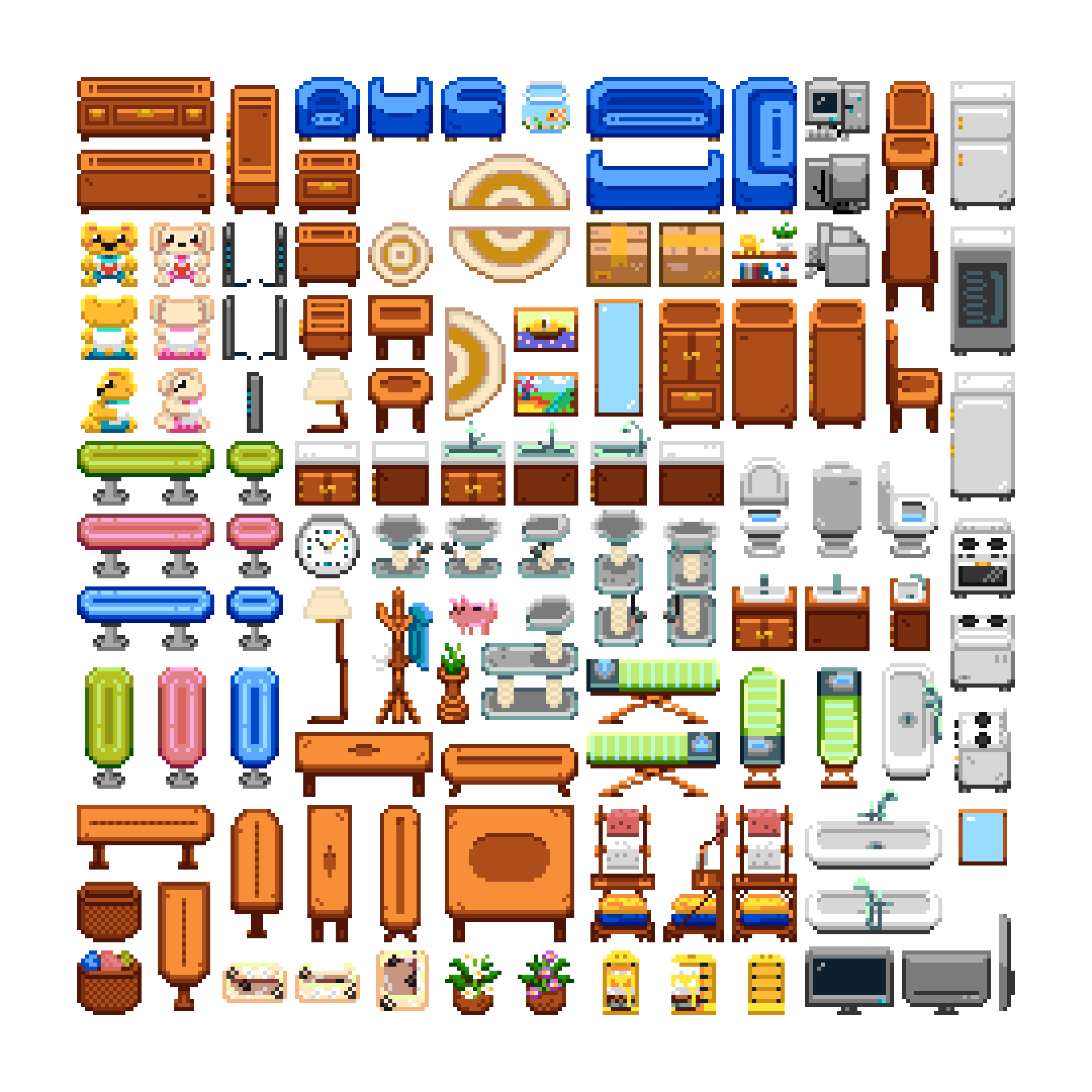 Top-Down Pixel Art Furnitures made in Famicube Game Colors :)